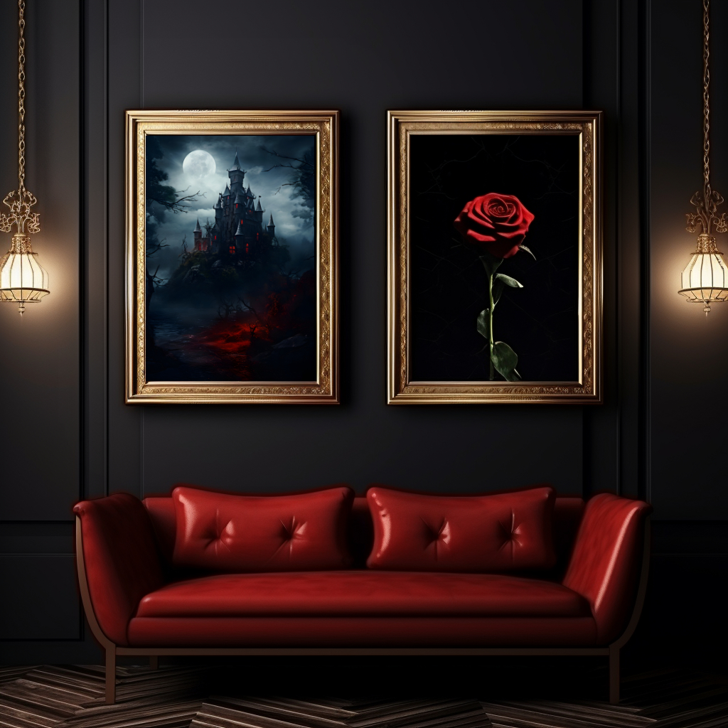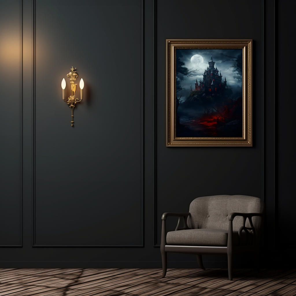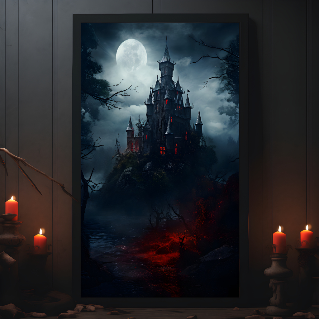 Poster Gothic Gruselschloss mit Vampir, Gothic Kunstdruck, Download