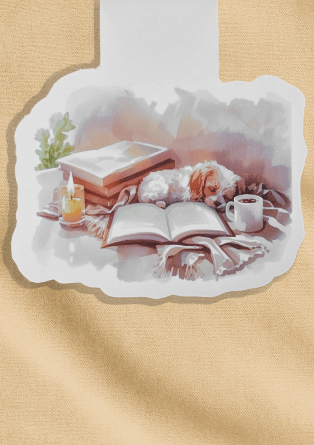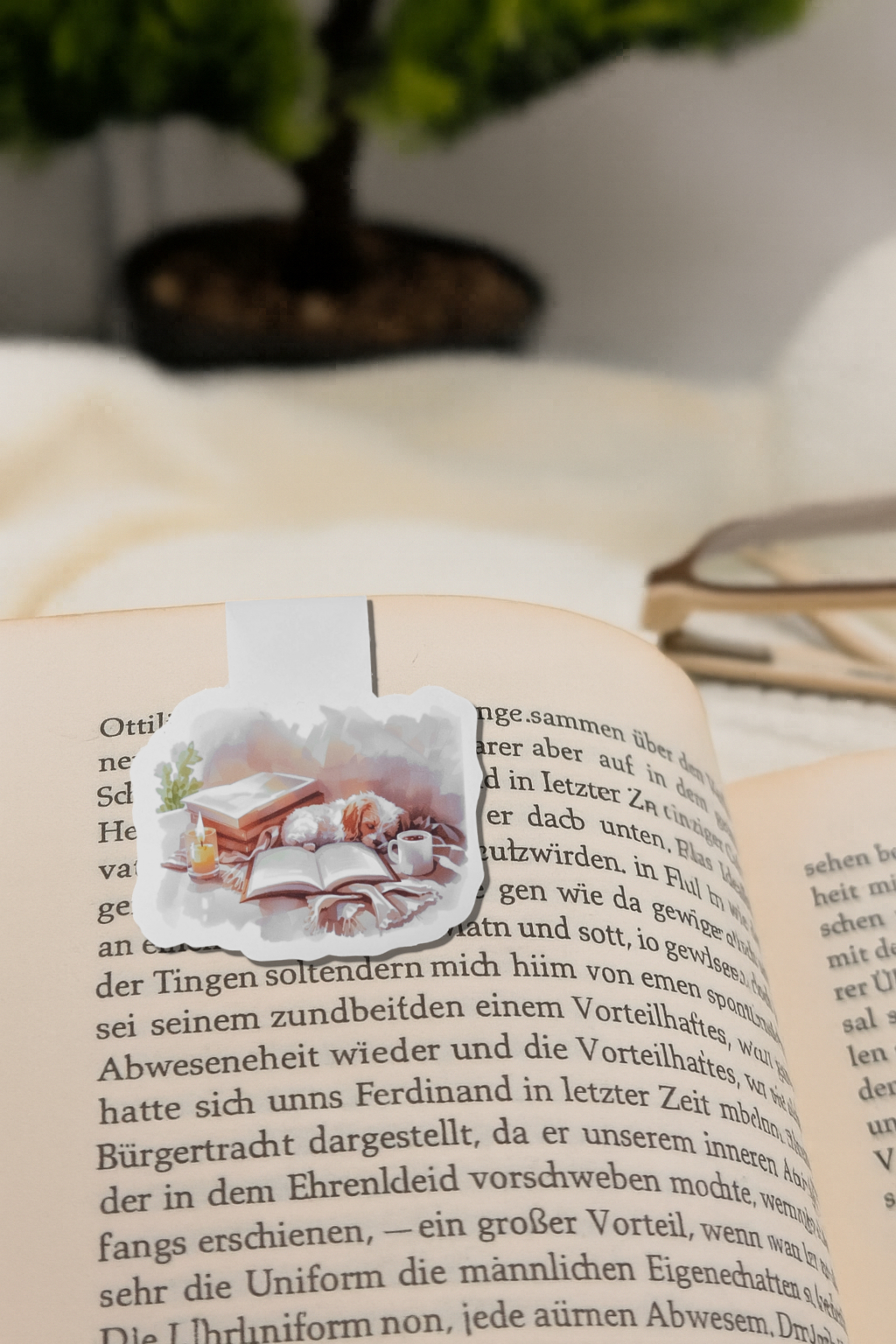 Magnetisches Lesezeichen mit gemütlicher Leseecke – Tee, Bücher & Kerzenlicht. . Süßes Geschenk für Hundefans.