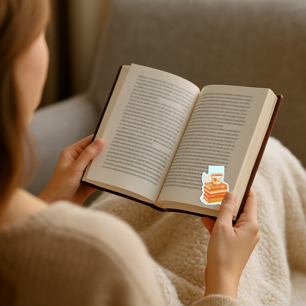 ⭐ Gemütliches Lesezeichen „Teetasse & Bücher“