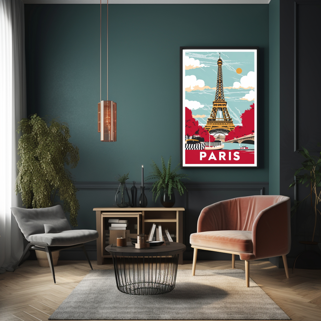 Ich habe hier ein Reiseposter entworfen, das wohl das bekannteste Bauwerk in Paris zeigt, den Eiffelturm. Hol dir ein Stück Urlaubsflair in dein Zuhause, Erinnerungen an deinen letzten Aufenthalt in Frankreich oder nutze es als Motivation, deiner Reiselust bald wieder nachzugeben und in den heiß ersehnten Urlaub zu gehen.