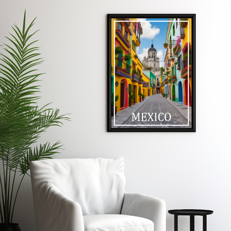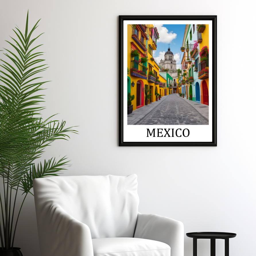 Ein schönes Travel Poster einer Strassenscene in Mexiko Stadt.
