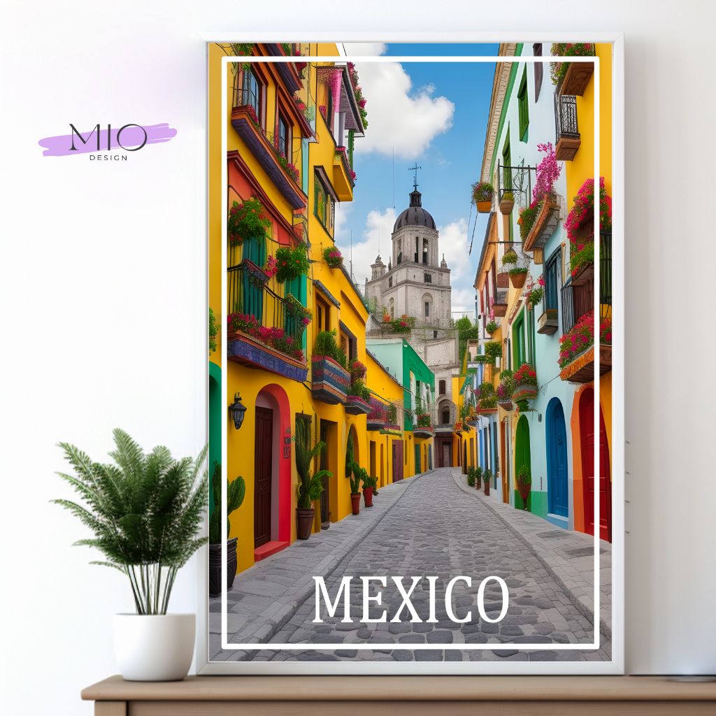 Du hast auch Fernweh und liebst Nordamerika? Dann bist du hier genau richtig. Ich habe hier ein Reiseposter entworfen, dass eine kleine Straße irgendwo in Mexiko zeigt. Hol dir ein Stück Urlaubsflair in dein Zuhause, Erinnerungen an deinen letzten Aufenthalt in Nordamerika oder nutze es als Motivation, deiner Reiselust bald wieder nachzugeben und in den heiß ersehnten Urlaub zu gehen.